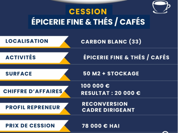 Carbon-Blanc, Bordeaux, Gironde, Nouvelle-Aquitaine, France métropolitaine, 33560, France🌿 FONDS DE COMMERCE À CÉDER – ÉPICERIE FINE, THÉS & CAFÉS...