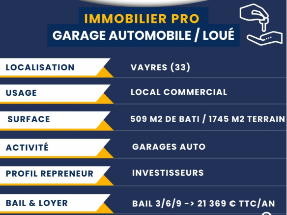Vayres, Libourne, Gironde, Nouvelle-Aquitaine, France métropolitaine, 33870, France📍 Local commercial loué – Garage Automobile📍 Vayres (33) – Axe passant...