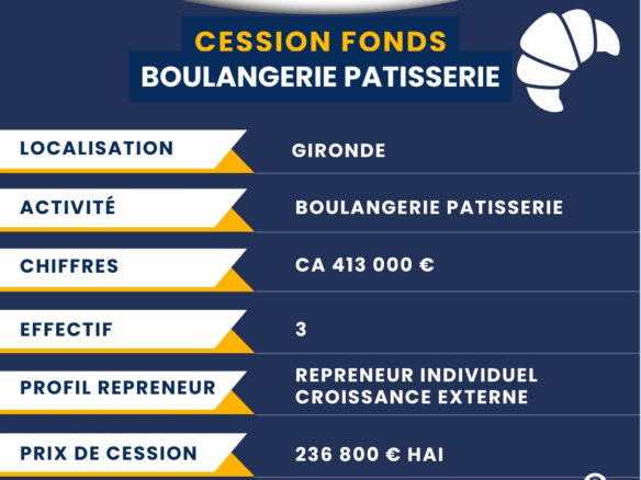 Libourne, Gironde, Nouvelle-Aquitaine, France métropolitaine, 33500, FranceBoulangerie-Pâtisserie de Belle Notoriété Nous vous proposons un fonds de commerce de...