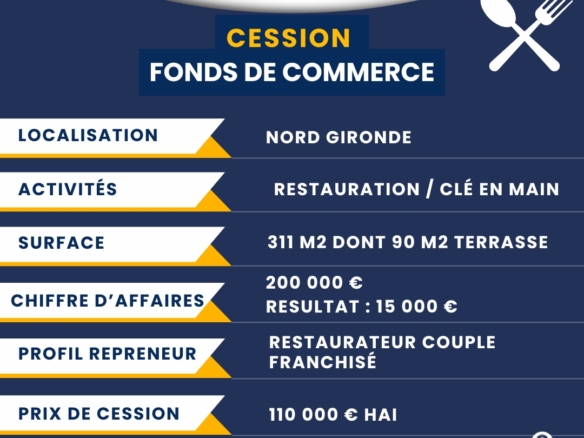 Fonds de Commerce Restaurant Traditionnel proche centre commercial