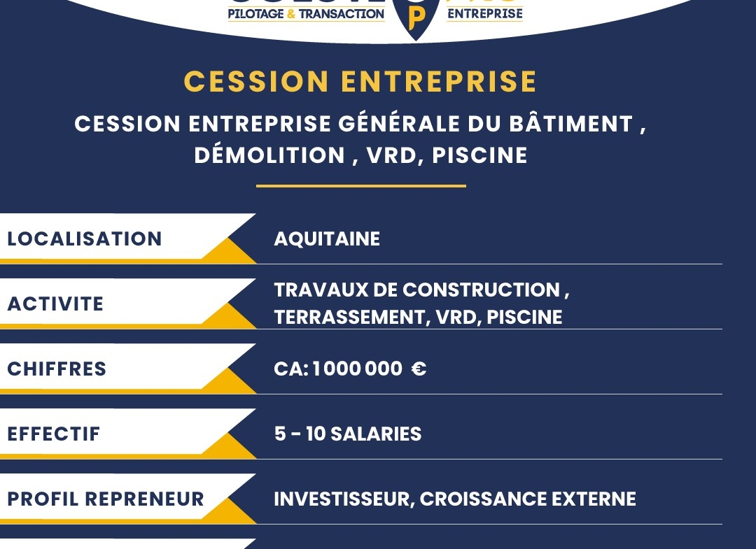 🏗️ CESSION D’ENTREPRISE – BTP (MAÇONNERIE / VRD / TERRASSEMENT / PISCINE)